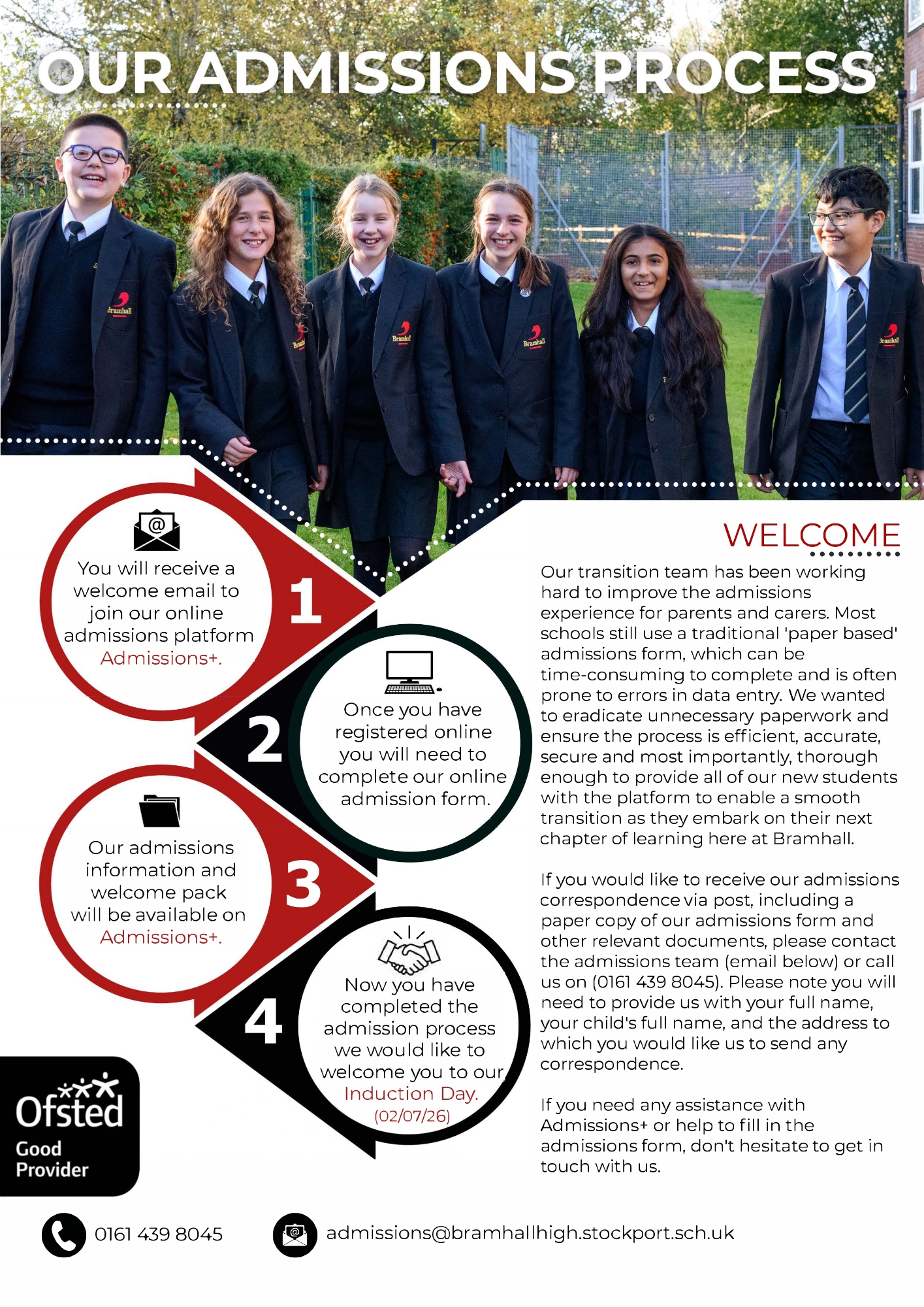 Stockport School admissions team can be contacted on the following telephone number: